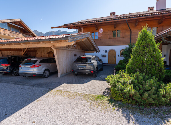 - Carport (2015, Erweiterung 2023) für 2 Autos plus 1 Stellplatz daneben, zusätzlich Erweiterung für Abstellmöglichkeit von Fahrrädern