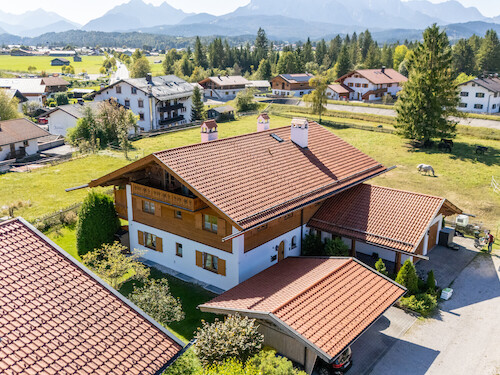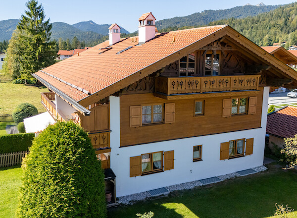 Zum Verkauf steht eine hochwertig modernisierte Doppelhaushälfte im Landhausstil mit drei separaten Wohneinheiten in attraktiver Lage in Wallgau. Das Haus wurde 1996 erbaut und laufend qualitativ hochwertig modernisiert. Alle Wohnungen sind geschmackvoll ausgestattet und verfügen über moderne Einbauküchen, geflieste Böden (ausgenommen Schlafzimmer EG mit Vinylboden) sowie Fußbodenheizung.