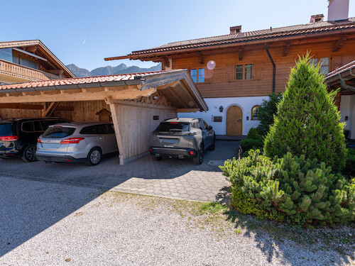 - Carport (2015, Erweiterung 2023) für 2 Autos plus 1 Stellplatz daneben, zusätzlich Erweiterung für Abstellmöglichkeit von Fahrrädern
